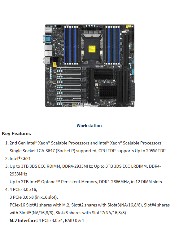 • 超微X11SPA-TF單路工作站主板 LGA3647針腳